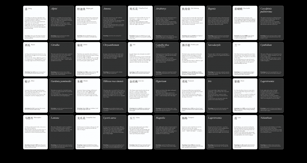 Each plant has two cards — one in Latin, one in Chinese.